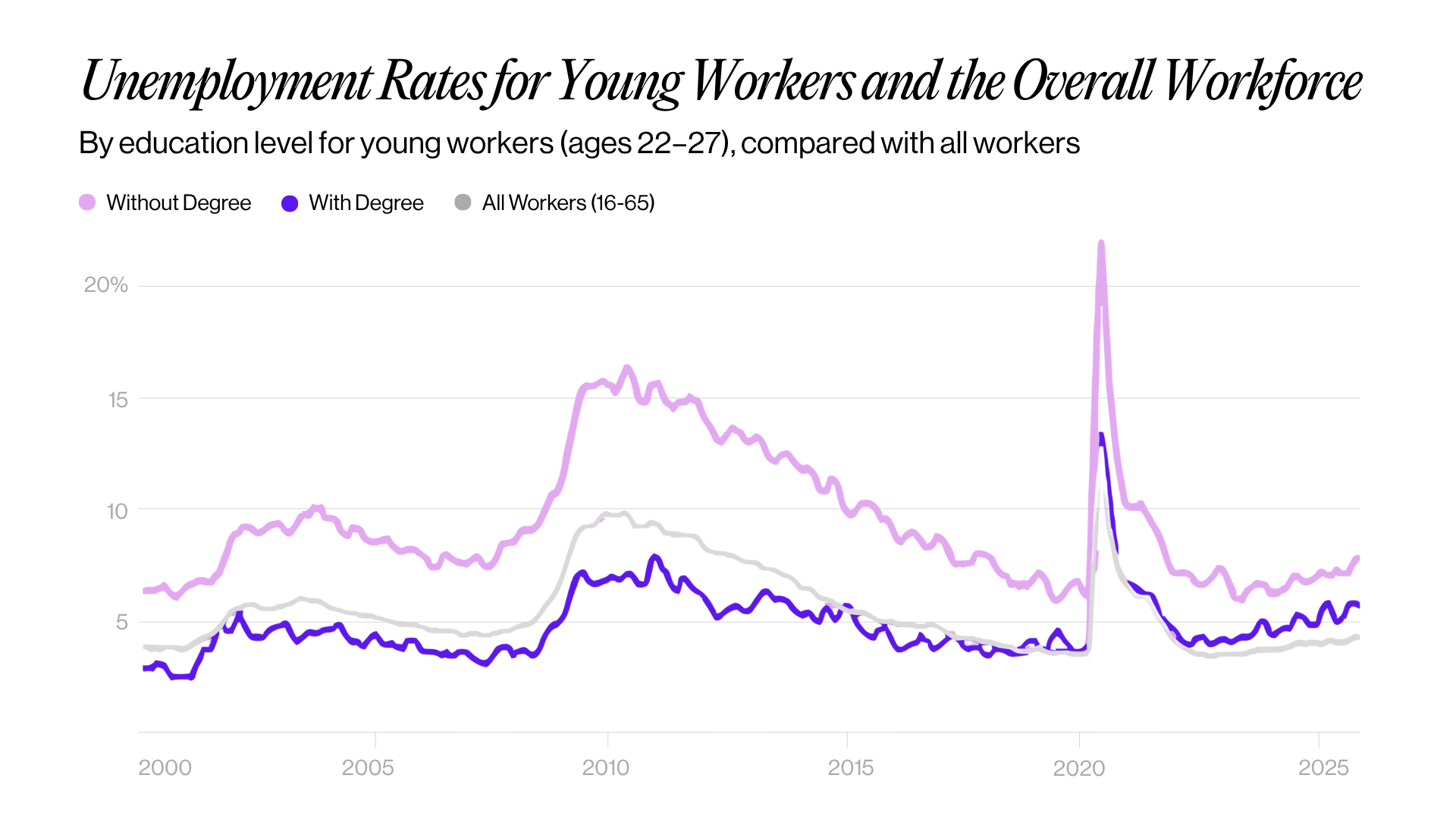 Recent data shows rising unemployment among early-career professionals, even as overall layoffs remain low.